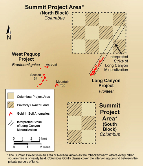 A map of Columbus Gold's Summit project relative to Fronteer's Long Canyon gold deposit can be viewed at the following link: www.columbusgoldcorp.com/i/nr/2011-02-03-map.jpg
