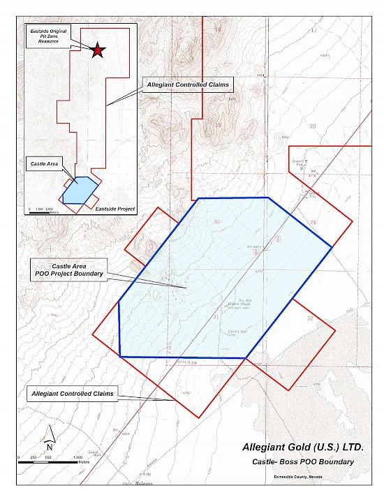 Peter Gianulis, CEO of Allegiant Gold, commented: “The commencement of a Plan-of-Operations is an important next step in the development of the Castle Area at Eastside allowing us to dramatically increase drilling and technical work. We have applied to expand the permitted area from 5 acres to over 1648 acres. Our goal at the Castle Area in the next stage of exploration will be to expand the existing resource, upgrade a portion from Inferred to Measured and Indicated, as well as conduct more advanced metallurgical work in anticipation of an eventual preliminary economic assessment.”